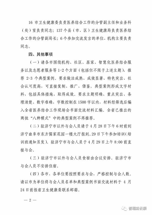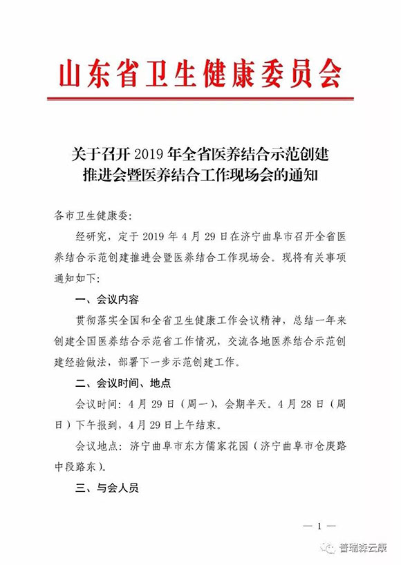 2019年全省醫(yī)養(yǎng)結(jié)合示范創(chuàng)建推進會暨醫(yī)養(yǎng)結(jié)合工作現(xiàn)場會2019年4月29日上午8時左右,山東普瑞森醫(yī)療設備股份有限公司各部門負責人在王總的帶領下參加在曲阜市舉行的“2019年全省醫(yī)養(yǎng)結(jié)合示范創(chuàng)建推進會暨醫(yī)養(yǎng)結(jié)合工作現(xiàn)場會”,并陪同省衛(wèi)健委領導參觀小雪社區(qū)衛(wèi)生服務中心醫(yī)養(yǎng)結(jié)合示范點。