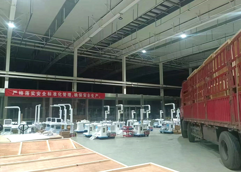 每一臺(tái)體檢機(jī)都由獨(dú)立大型木質(zhì)包裝箱嚴(yán)格密封,以此保證運(yùn)輸過程中設(shè)備完好,順利抵達(dá)客戶端。夜間,工人們正在加班裝車搬運(yùn)中....