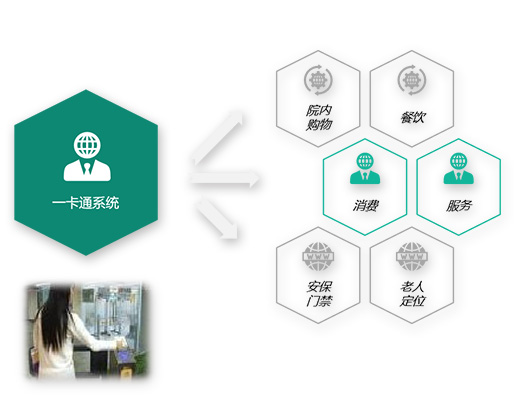 能在解決養(yǎng)老機構(gòu)的管理的繁瑣及復(fù)雜,將安保門禁、老人定位、購物、餐飲、服務(wù)、消費集合于一體,實現(xiàn)一卡通的管理模式,一張老人卡記錄老人的行動軌跡及所有的消費明細